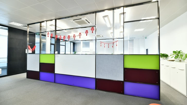 Now Evonik employees in Shanghai have something exciting and fun to rest their eyes upon. Walking into the office, you’ll be impressed by a 2-meter high accent wall in the pantry area. Square blocks of PLEXIGLAS® in the colors of green, orange, purple, black and white have been arranged artistically with hollowed space into a large mural standing up there. They are surely going to brighten up your day.