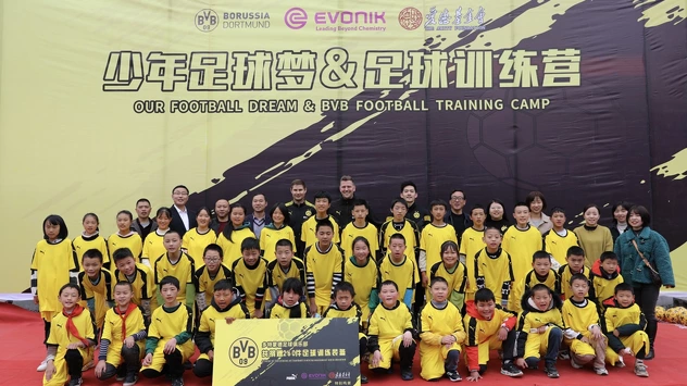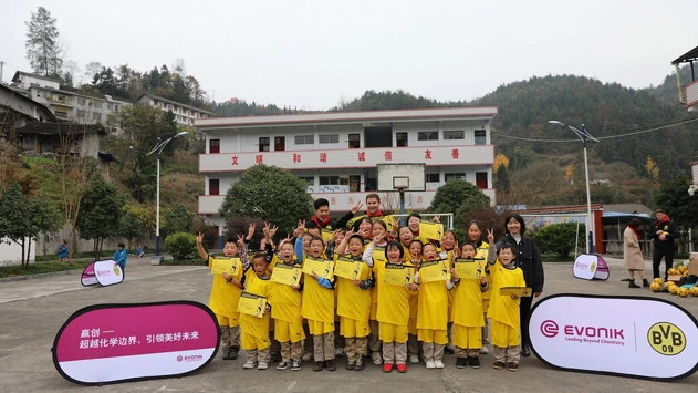 11月6日,特种化工公司赢创携手德甲球队多特蒙德足球俱乐部(BVB),与爱德基金会共同举办的“少年足球梦”青少年足球公益项目正式启动。活动以“超越足球边界”为主题,首站在湖北恩施新塘乡举行。
