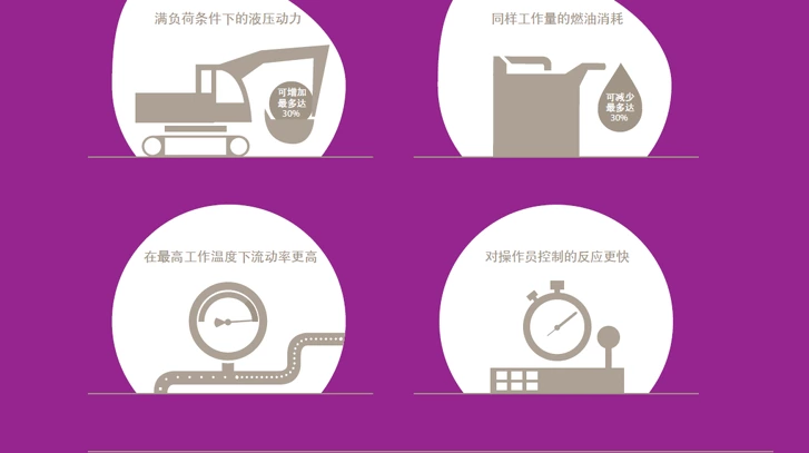 戴朗威®技术令液压油得以在更大的温度范围内有效发挥作用。施工设备操作员给出的液压指令更快地得以传达,且获得的反应更灵敏,即便是在极端恶劣的条件下。性能提高了,燃油节省了,二氧化碳排放减少了。